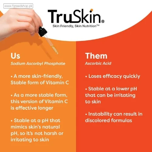 Truskin Vitamin C Serum Is A Popular Affordable And Highly Rated Facial Serum Designed To Brighten Firm And Hydrate Skin Using A Stable Form Of Vitamin C Sodium Ascorbyl Phosphate At Now Fareedshop.Pk