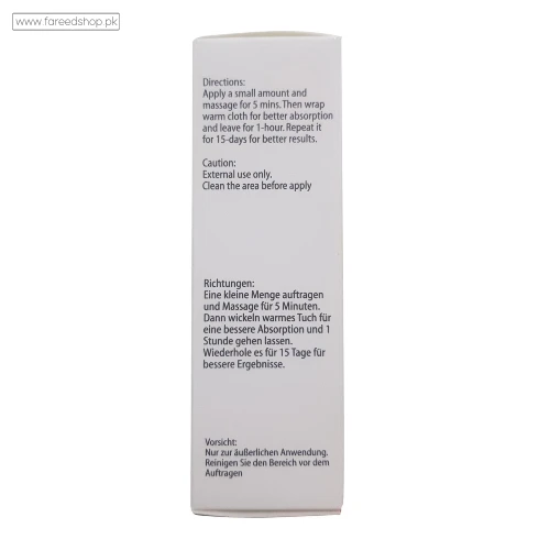 Directions: Apply a small amount on upper side and left & right side of organ and massage for 5 mins. Then wrap warm cloth for better absorption and leave for 1 hour. Repeat it for 15 days for better results.